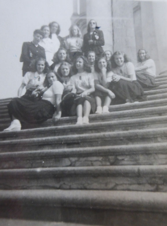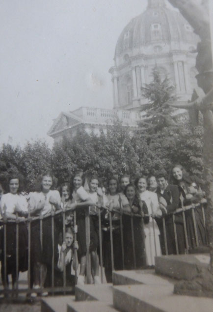 La squadra femminile di nuoto vicino alla Basilica di Superga a Torino, settembre 1942.