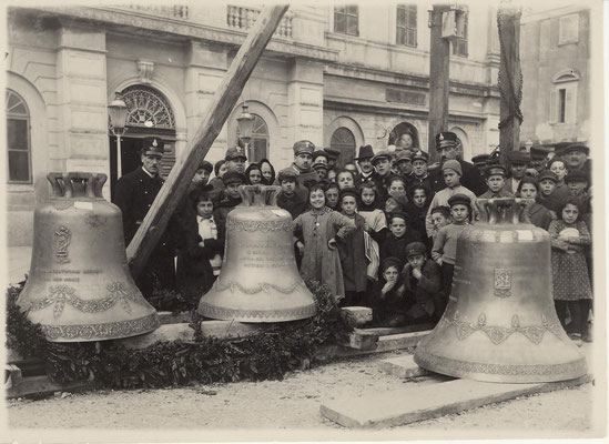 Le nuove campane per la cella campanaria del duomo di San Giorgio : esposizione in Piazza Tartini, Pirano 1920