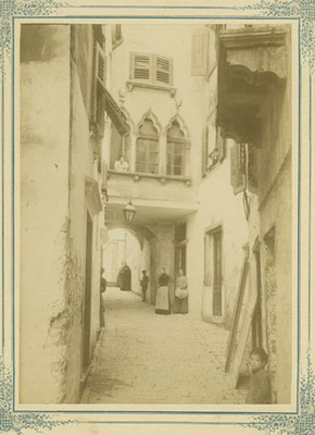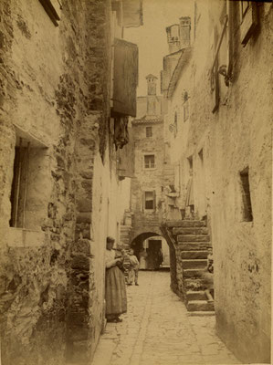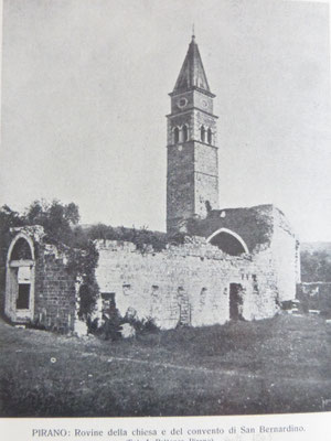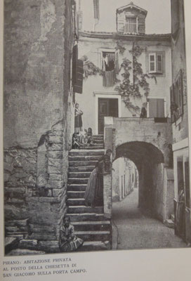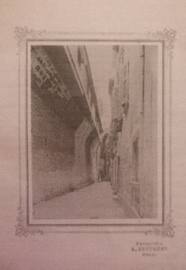 Da sin.: Calle con volto e scalinata Porta Campo, Rovine della chiesa e convento di San Bernardino ante 1905.