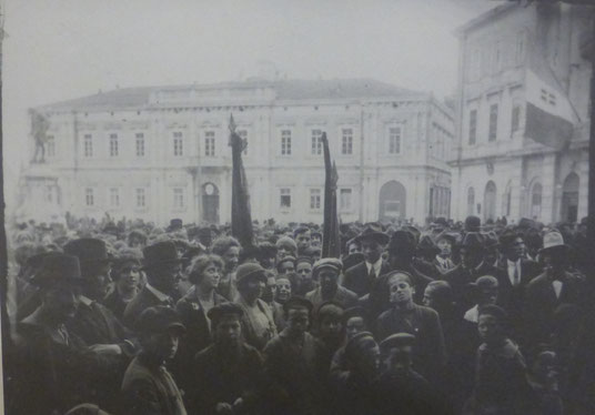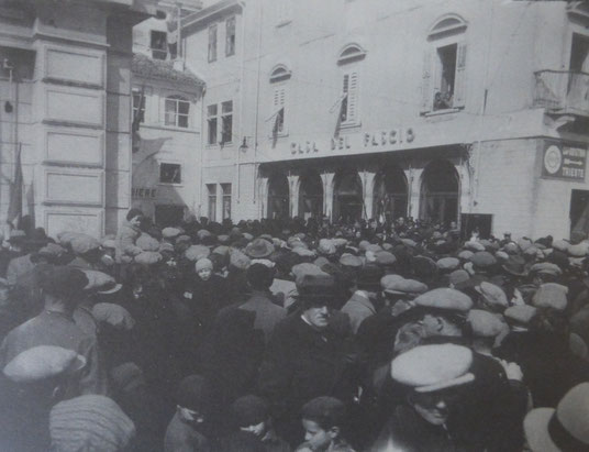 Folla davanti alla casa del Fascio Pirano, 1926 ca.