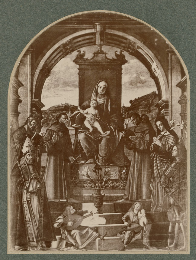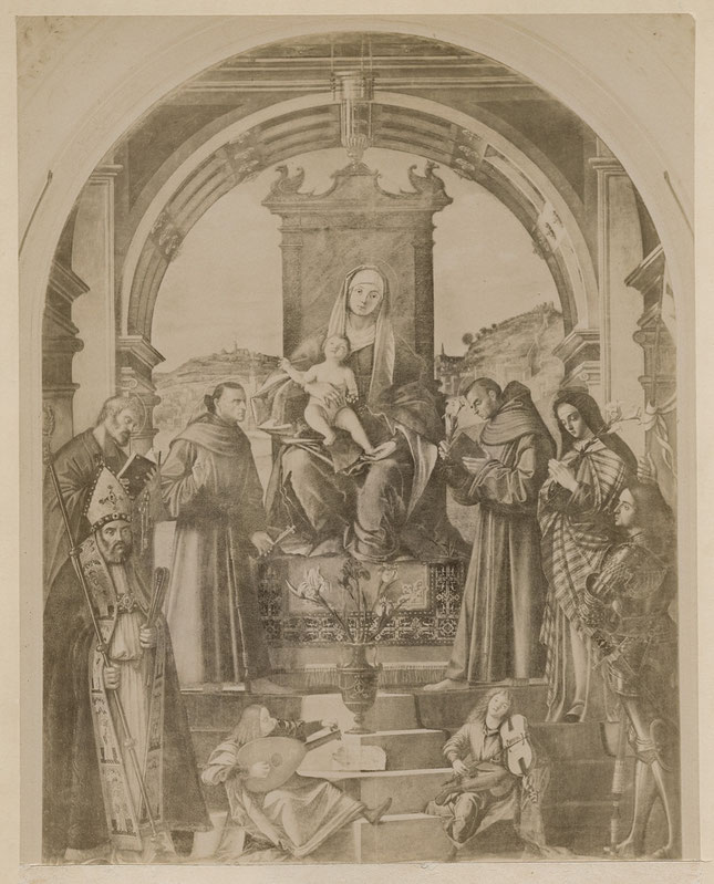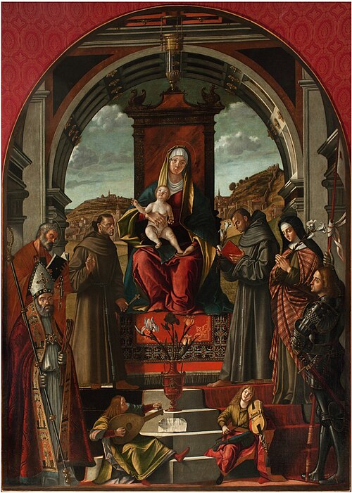 Vittore Carpaccio, Madonna col bambino fra i santi Ambrogio Pietro Francesca Antonio Chiara e Giorgio,