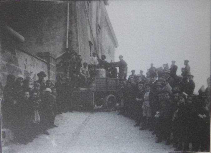 Il trasporto delle campane al duomo. Si tratta della stessa fotografia, ma quella della Collezione Bonifacio è una stampa speculare, cioè invertita.