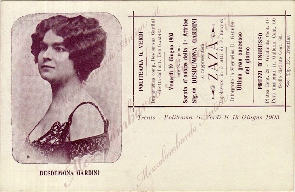 Sul manifesto si legge: Drammatica compagnia Desdemona Gardini diretta dall'artista Ugo Gardini, 19 giugno 1903.