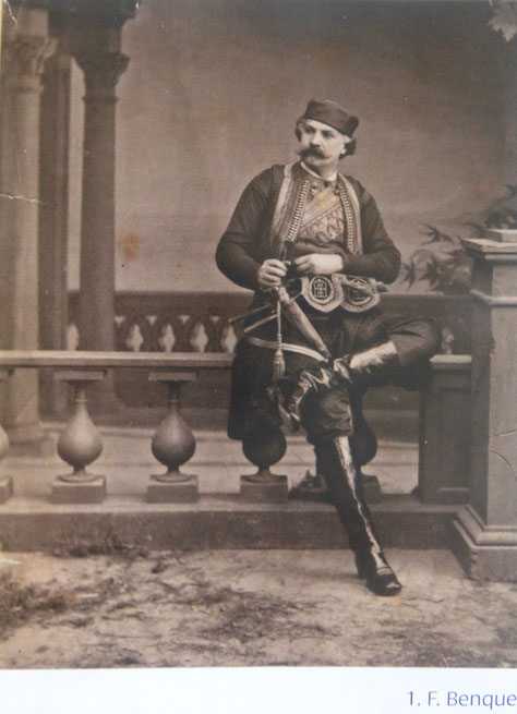 Guglielmo Sebastianutti (1824-1881) in costume da montenegrino ritratto in studio da Francesco Benque, 1864.