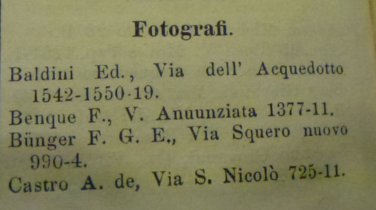 La voce Fotografi nella Guida del 1866, ripetuta nel 1867.