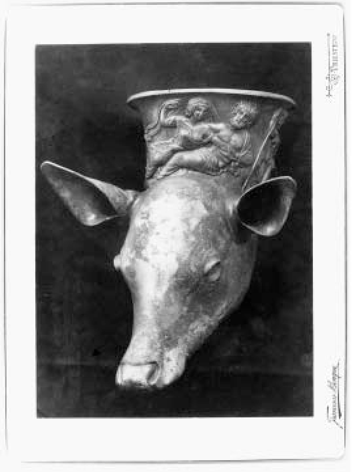 La foto del rython conservato presso i Civici Musei di Storia ed Arte è attribuita a Francesco Benque dalla stampa della firma sul cartoncino dell'immagine, ciò non toglie che le copie successive siano attribuite al figlio Alberto.