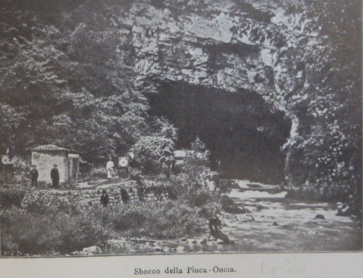 Nell'ordina da sin: Ponte naturale in San Canziano di Albiniana, Grande arco naturale in Canziano di Albiniana(Planina), Sbocco della Piuca-Oncia.