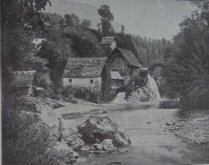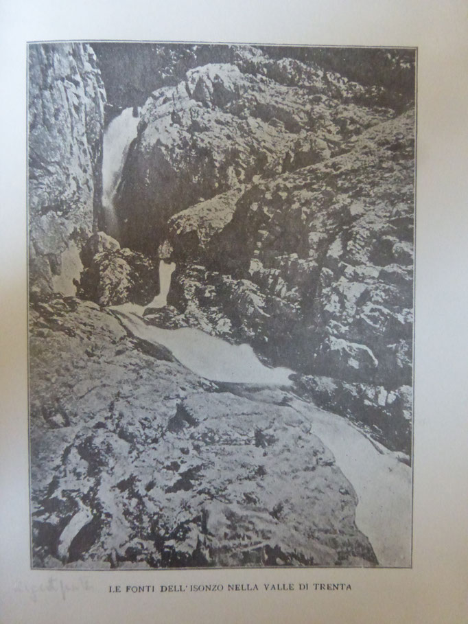 sotto : Molino a sega dul fiume Bacia, Passaggio dal Kaluder da Tolmino al primo letto dell'Isonzo, Scavi preistorici in Santa Lucia condotti da Carlo Marchesetti.
