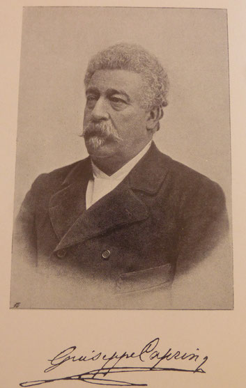 Ritratto di Giuseppe Caprin con autografo presente nel primo volume di L'istria nobilissima edito nel 1905