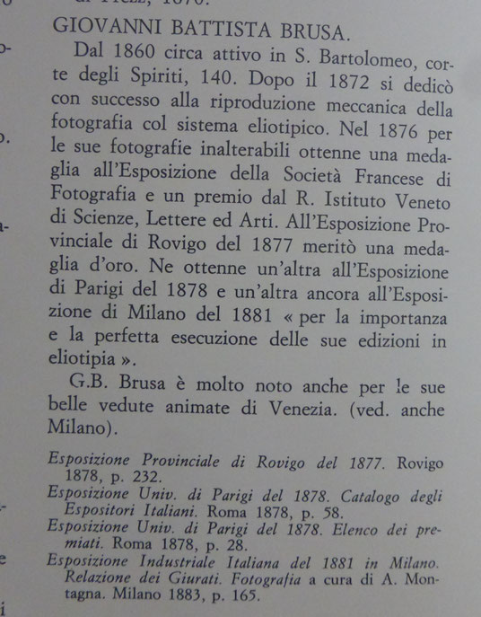 Al fotografo E. Brusa di Venezia sono attribuite le sculture di S. Michele di Murano, si presume che la lettera indicata come iniziale del nome E. sia uno svarione tipografico.
