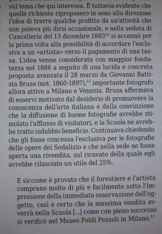 La parte che ci interessa è sottolineare nel saggio di Sara Filippin, Primi materiali sulla presenza della fotografia alla Scuola Grande di san Rocco in Venezia, p. 67-92 quanto afferma.