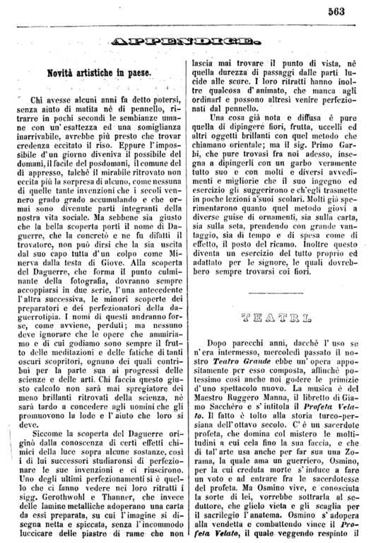 Il 22 novembre dello stesso anno La Favilla (v. 11, a. 1) pubblica l'articolo Novità artistiche in paese.