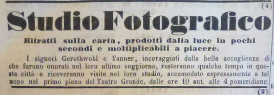 Il periodico locale continua a seguire e a segnalare quanto avviene nel campo della fotografia, ricoprendo un ruolo giornalistico di informazione e di richiamo, sollecitando la curiosità del pubblico. Nello specifico si esaltano i ritratti della coppia Gerothwohl & Thanner che sembrano animarsi in quanto non più su lastre rigide ma su carta e perfezionati dal pennello con ritocchi colorati all'acquerello. Nei mesi di maggio e giugno del 1847 sono presenti in Piazza Grande al primo piano del Teatro Grande, lo confermano i continui avvisi su l'Osservatore triestino.