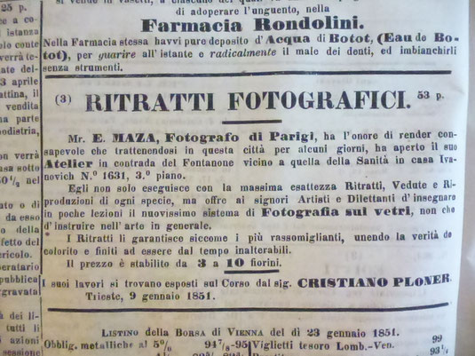 Su "Il diavoletto" pubblica gli avvisi Ritratti fotografici all'inizio dell'anno, il 13, 18 e 25 gennaio del 1851.